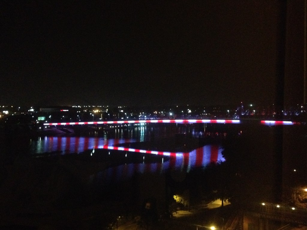 The city had a lot to explore. The trolley took us right by a pawn shop which was actually asked to be on Pawn Stars before the shop now featured on the television show was chosen. We stayed right next to beautiful bridges. There was a spectacular illumination of the bridges each night with vibrant, changing colors. Our room luckily faced that direction so we could see the illuminations vividly from our window.
