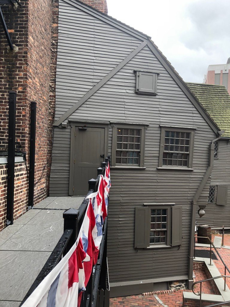 Next, we went on to explore some history. We went over to Paul Revere’s house. We waited longer in line to get in than the total amount of time that we spend in the house, but I would still recommend it for a quick stop. The admission cost was minimal (but it’s cash only) and it was amazing to think that you are standing right where Paul Revere lived hundreds of years before. The building is very unassuming and could be easily missed as it attached to other (now more modern) residential units. Inside there are only a few rooms to see. We learned some interesting facts about how to tell when flooring is from based on the type of nails in the floorboards. A few artifacts in the home were original to Paul Revere and his family. This included a sampler that hung on the wall, as well as a chair. It was pretty astounding that they were still intact.